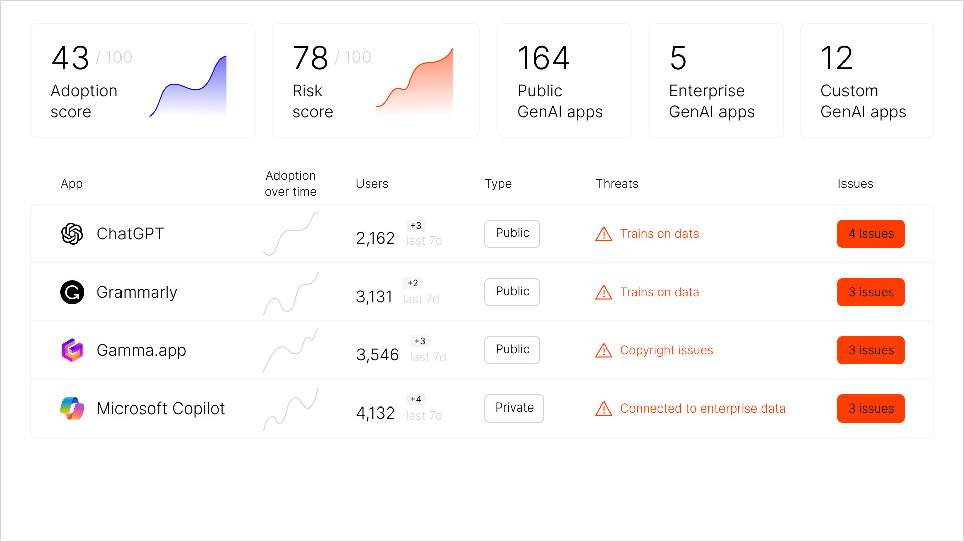 Adoption of GenAI technology grows on a massive scale, with unique risks and opportunities. Shine a light on your GenAI risk surface.