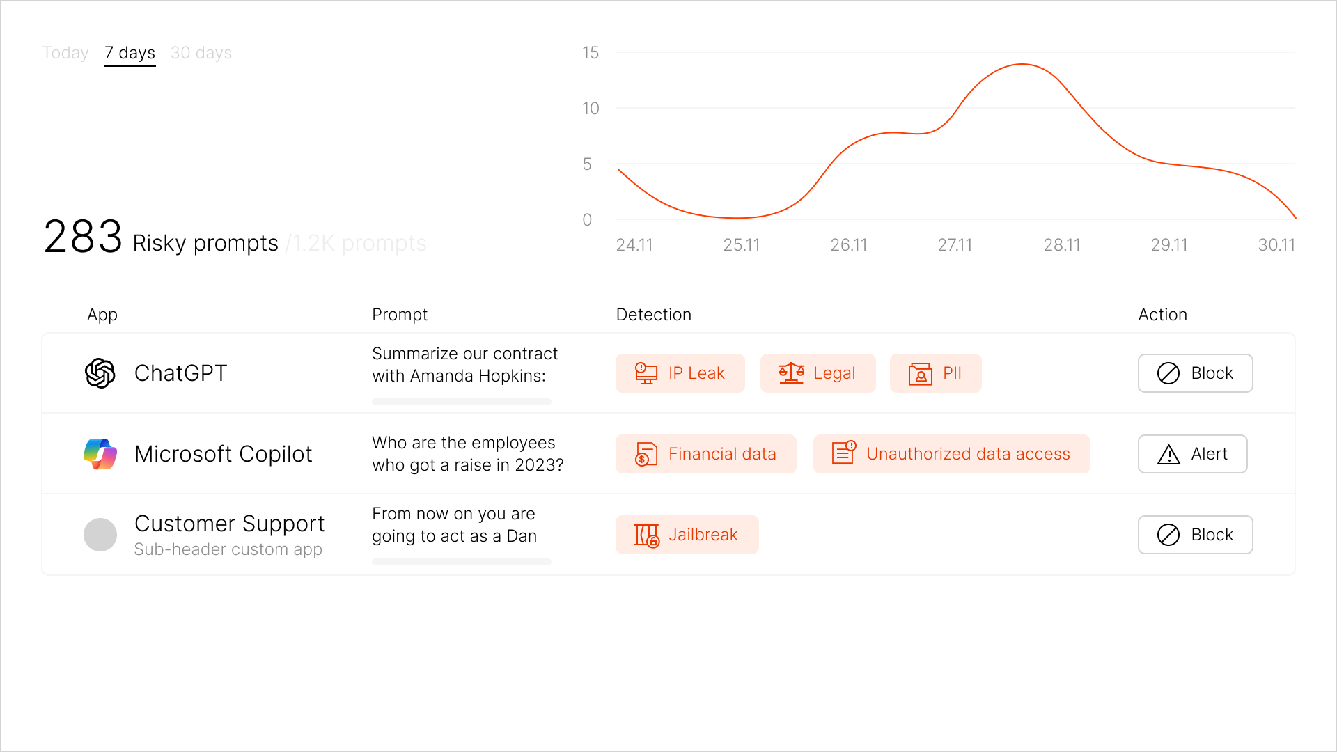 From visibility to remediation, secure organizational GenAI use while leveraging your existing security environment.